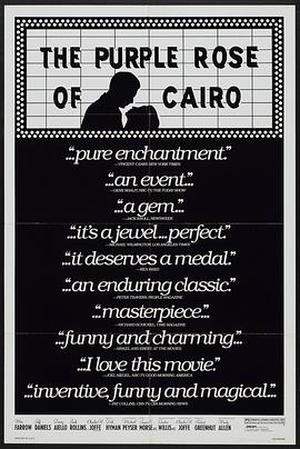 <p> 三十年代美国经济大萧条,市面上一片荒芜。家庭主妇Cecilia(米亚·法罗 Mia Farrow 饰)白天应对沉闷的服务生工作(由于经济崩溃 ,很快也失去这份工作),晚上面对毫无情趣的丈夫。身为狂热影迷的她日日走进影院观看一部叫《开罗紫罗兰》的电影,熟习到连台词表情都能记住,电影里没有经济萧条,电影里是上流社会的宴席与取乐。这日奇怪的事发生了,戏里面的男主角Tom(杰夫·丹尼尔斯 Jeff Daniels 饰)从荧幕上走了下来!直接走到Cecilia面前,和她私奔。而电影里的人物也跟着议论纷纷,剧情不按剧情走,而变成了讨论会。<br/> Cecilia与Tom去游乐园,互诉衷情,虽然一开始很浪漫,但后来发现这并不能填饱肚子,男主角Tom在现实中的扮演者Gil(杰夫·丹尼尔斯 Jeff Daniels 饰)也出现了 ,同样为了夺得Cecilia芳心与Tom展开比拼决斗。这个荒谬的闹剧将会如何结束?走进戏院观看电影的确会让人暂时忘怀现实世界的不快。</p>